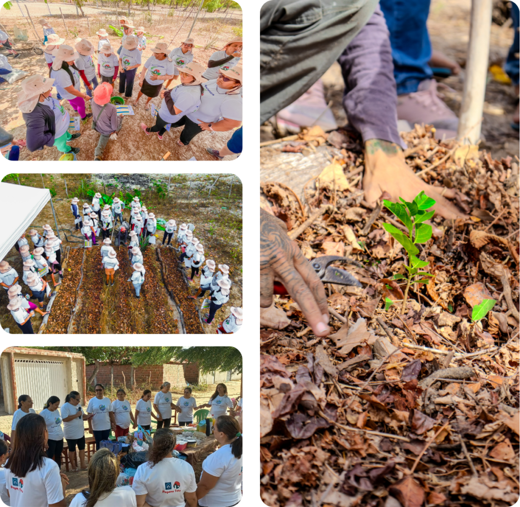 Com a condução da educadora agroflorestal Marrie Hamelak, as famílias aprofundaram seus conhecimentos sobre sistemas agroflorestais adaptados ao semiárido aprendendo: